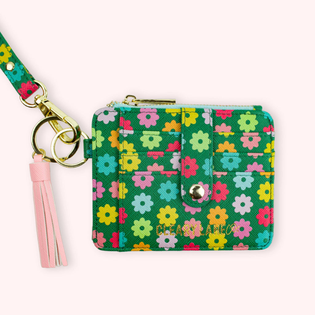 Cleary Lane - Wallet Keychain - Emerald Rainbow Flowers