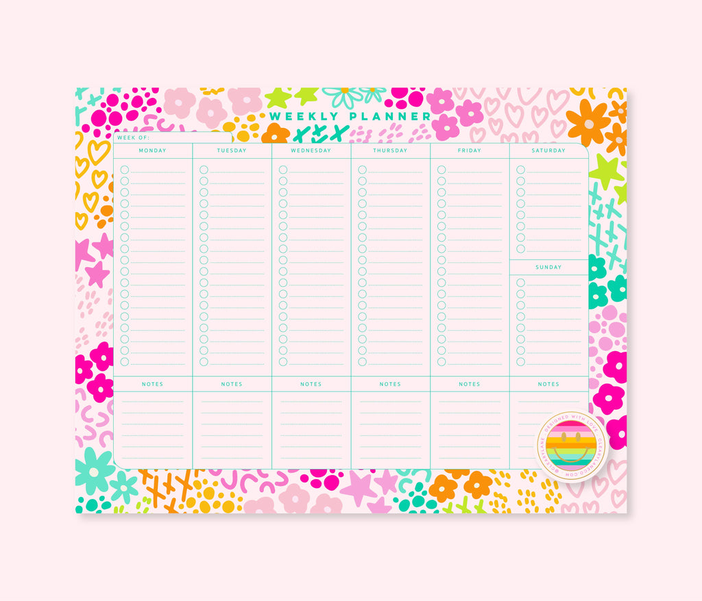 Cleary Lane - Weekly Planner Notepad | 8.5"x11" | Pink Rainbow Garden