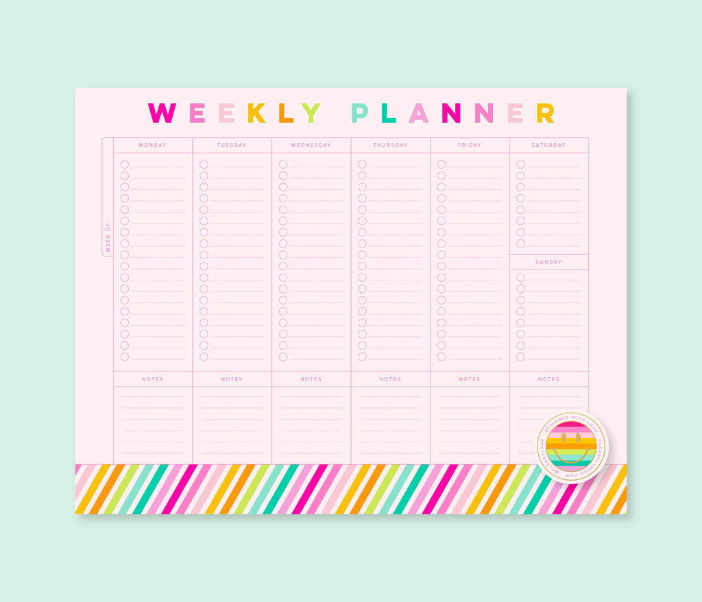 Cleary Lane - Weekly Planner Notepad | 8.5"x11" | Rainbow Stripes