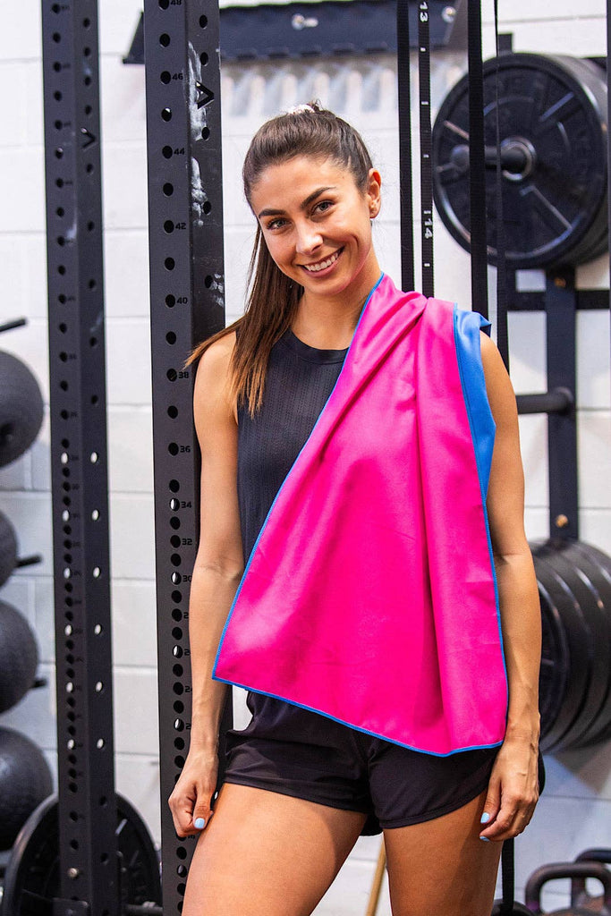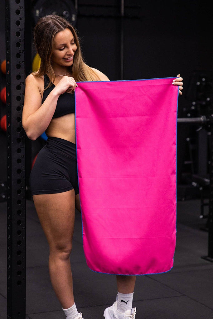 The contrasting pink and blue gym towel of your dreams which is made out of a special quick dry material meaning that it is ultra absorbent, lightweight, compact and odour free! Making this beautiful towel perfect for the gym, cycle, pilates, tennis, cricket, swimming, camping, hiking, sauna, spa or for any sweaty occasion!