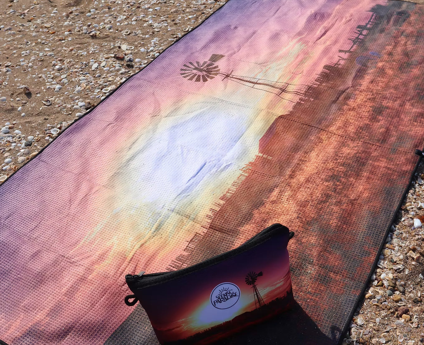 Our Outback Sunset microfibre towel is compact and lightweight, making if the perfect travel towel. These full size quick dry towels have a soft waffle texture that keeps your towel sand free.