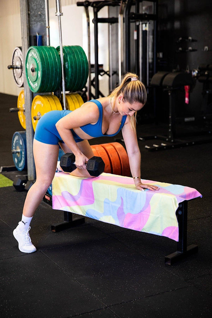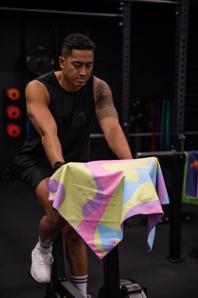 The gym towel that is everything but boring! Apart from having the coolest pastel rainbow swirl design ever on a sports towel, it is also made out of a special quick dry material meaning that it is ultra absorbent, lightweight, compact and odour free! Which makes our funky towels perfect for the gym, cycle, pilates, tennis, cricket, swimming, camping, hiking, sauna, spa or for any sweaty occasion.