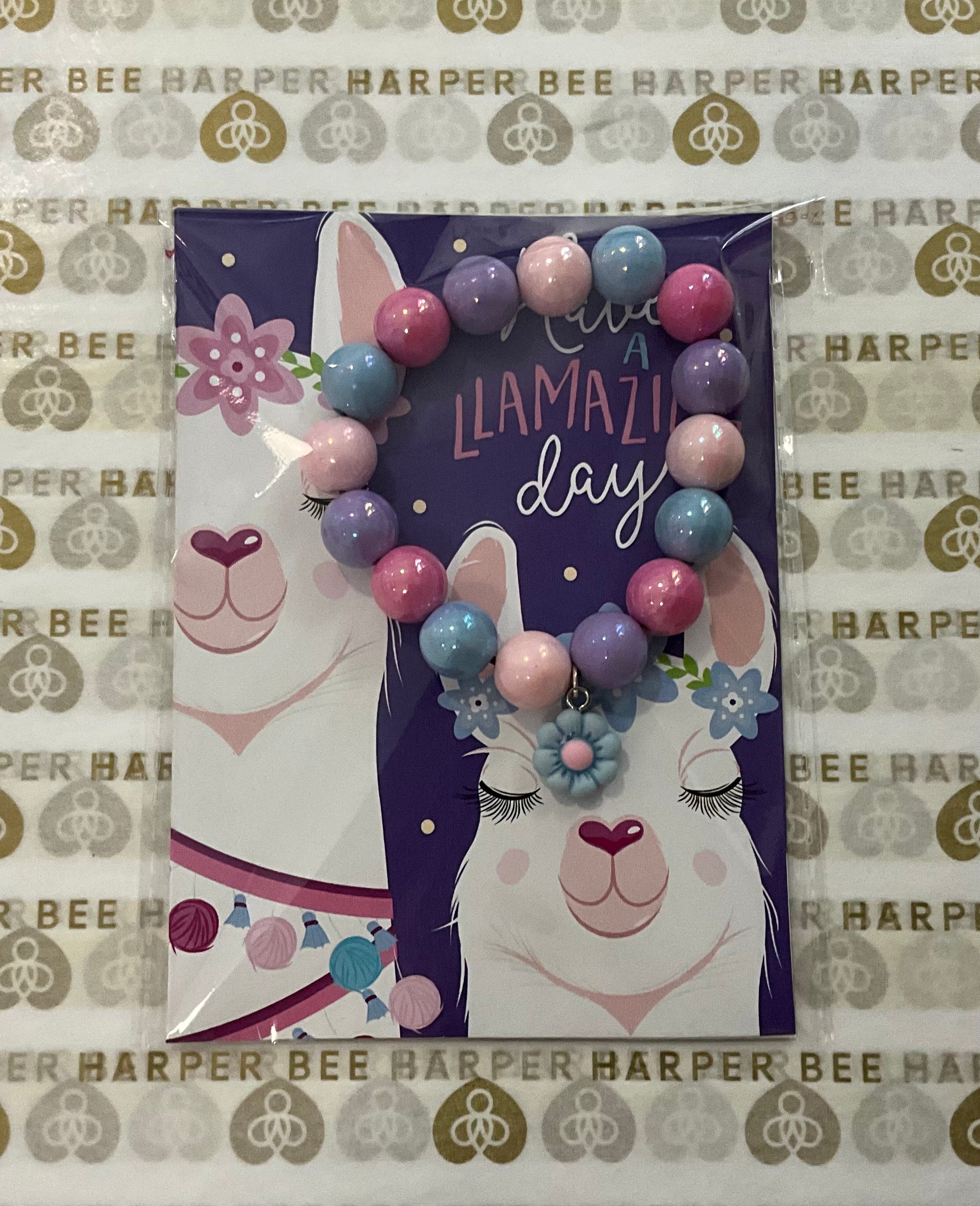 Harper Bee Llama and flower Birthday card and Bracelet pack pack.