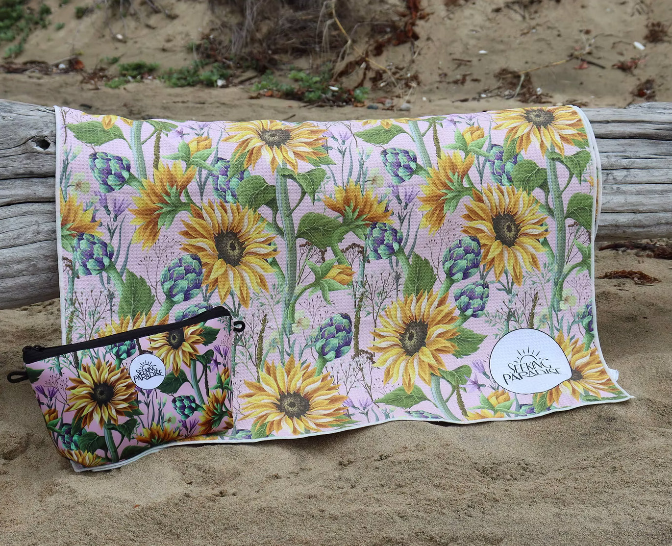 Our sunflower microfibre towel is compact and lightweight, making if the perfect travel towel. These full size quick dry towels have a soft waffle texture that keeps your towel sand free.